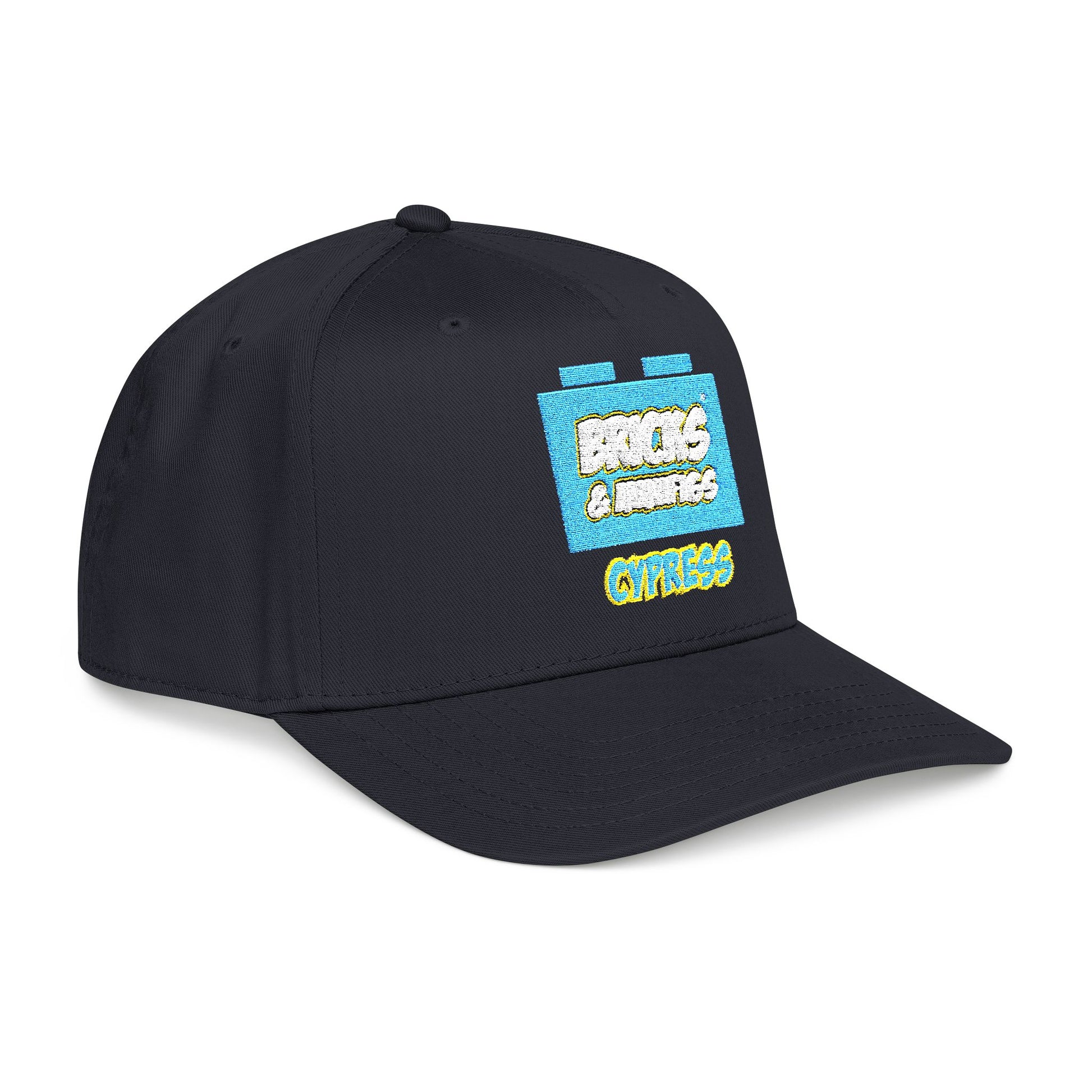 This mid-profile baseball cap blends playful nostalgia with street-ready style. The front shows a bright, pixelated brick logo in sky-blue and yellow tones that pops against the dark fabric. Structured five-panel construction and a seamless front keep the logo area clean and crisp. Wear it during long city strolls, weekend builds with friends, or at local meetups to add a splash of color and personality. The durable snapback lets you dial in a comfortable fit, while the matching undervisor and sweatband keep the look cohesive and comfortable throughout the day.