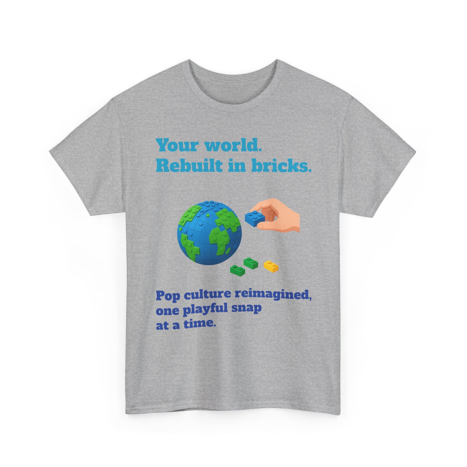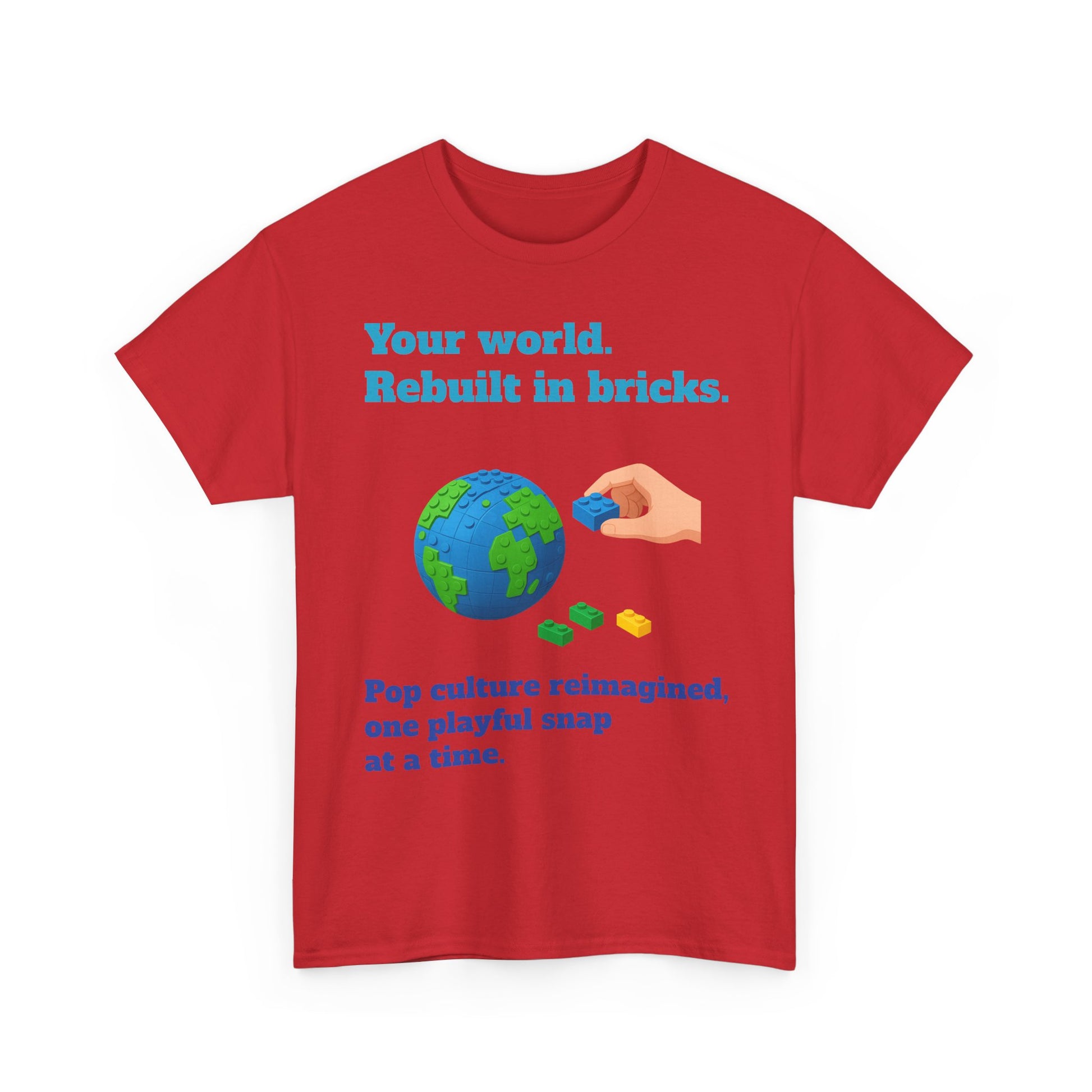 Show off your fandom in true builder style with the Your World, Rebuilt Tee! Featuring the motto “Your world. Rebuilt in bricks.” and the subtext “Pop culture reimagined, one playful snap at a time,” this shirt is made for fans who love to mash up creativity with iconic stories. Soft, stylish, and perfect for everyday wear, it celebrates the joy of turning the worlds you love into brick-built masterpieces.